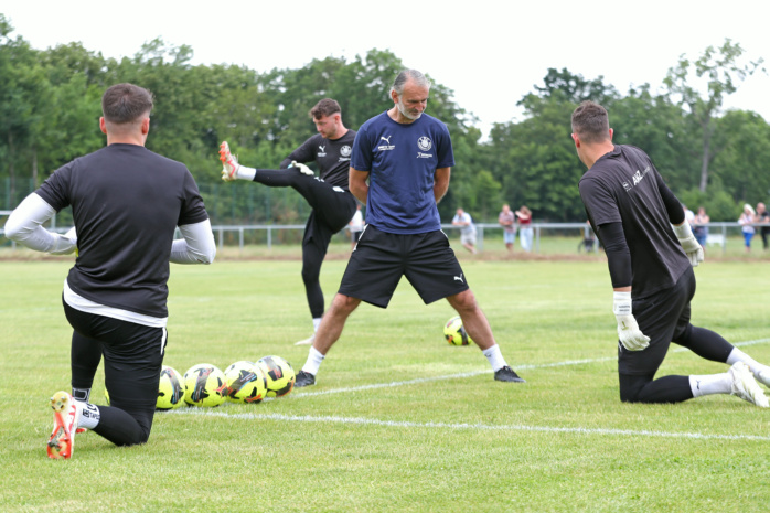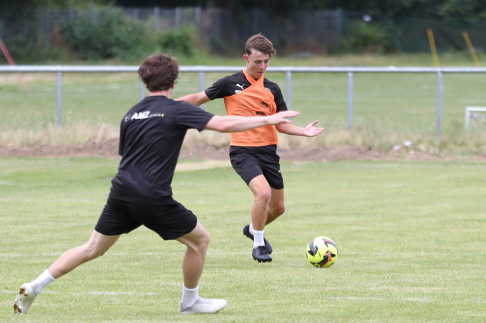 Da aber beide noch keinen neuen Verein gefunden haben und ihre Vertrag bei Lok offiziell noch bis Ende des Monats gilt, durften sie nochmal an alter Wirkungsstätte auflaufen. Zwischen den Pfosten segelten aber auch zwei neue Keeper durch die Lüfte. Einer von ihnen ist schon ein Blau-Gelber: Hugo Kjell Eichler ist Keeper bei der Lok-U19 und darf nun auch bei der Ersten mittrainieren. Als Probespieler zeigte außerdem Oskar Preil sein Können. Der 21-Jährige hütete zuletzt den Kasten beim SSV Jahn Regensburg II in der Bayernliga Nord.