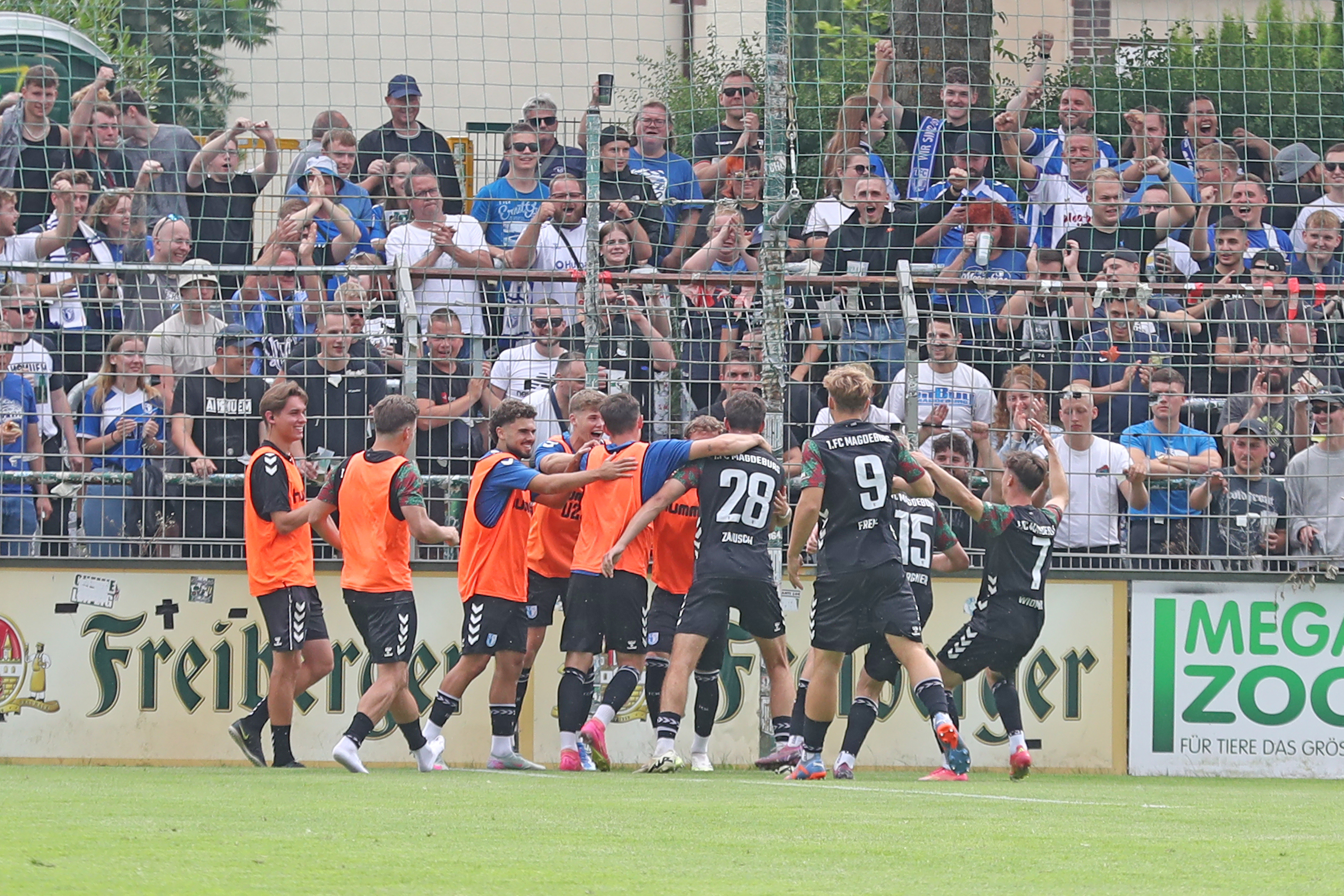 Torjubel beim Team von Magdeburg nach dem Treffer zum 0:2. Foto: Jan Kaefer