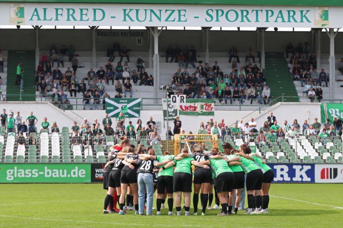 Als am Sonntagnachmittag der Schlusspfiff durch den Alfred-Kunze-Sportpark trillerte, fielen sich die Fußballerinnen der BSG Chemie Leipzig freudig in die Arme. Alle hatten ein begeistertes Lächeln im Gesicht. Und das Publikum feierte die Mannschaft. Dabei waren die Chemikerinnen soeben mit einer 0:5-Niederlage aus dem DFB-Pokal ausgeschieden. Verkehrte Welt in Leutzsch?