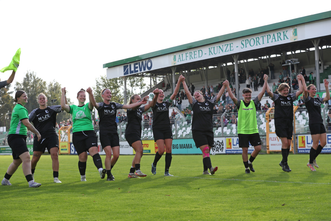 In der zweiten Hälfte sorgten Nike Andersson (51.), Elena Mühlemann (68.) und Noemi Gentile (75.) für den 0:5-Endstand – ein Resultat, dass zwar klar, aber mit Blick auf den Drei-Klassen-Unterschied in respektablem Rahmen ausfiel. Und das feierten die Leipzigerinnen anschließend völlig zu Recht.