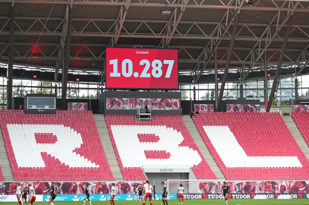 So viele Menschen hatten zuvor noch nie ein Heimspiel der Rasenballerinnen besucht. Insgesamt 10.287 Zuschauer wollten am Sonntag in der RB-Arena das Bundesligaspiel gegen den deutschen Double-Gewinner Bayern München sehen. Das waren genau 18 Fans mehr als bei der alten Bestmarke vor zwei Jahren gegen Wolfsburg. Sportlich war für die Leipzigerinnen trotz Rekordkulisse allerdings nichts zu holen.
