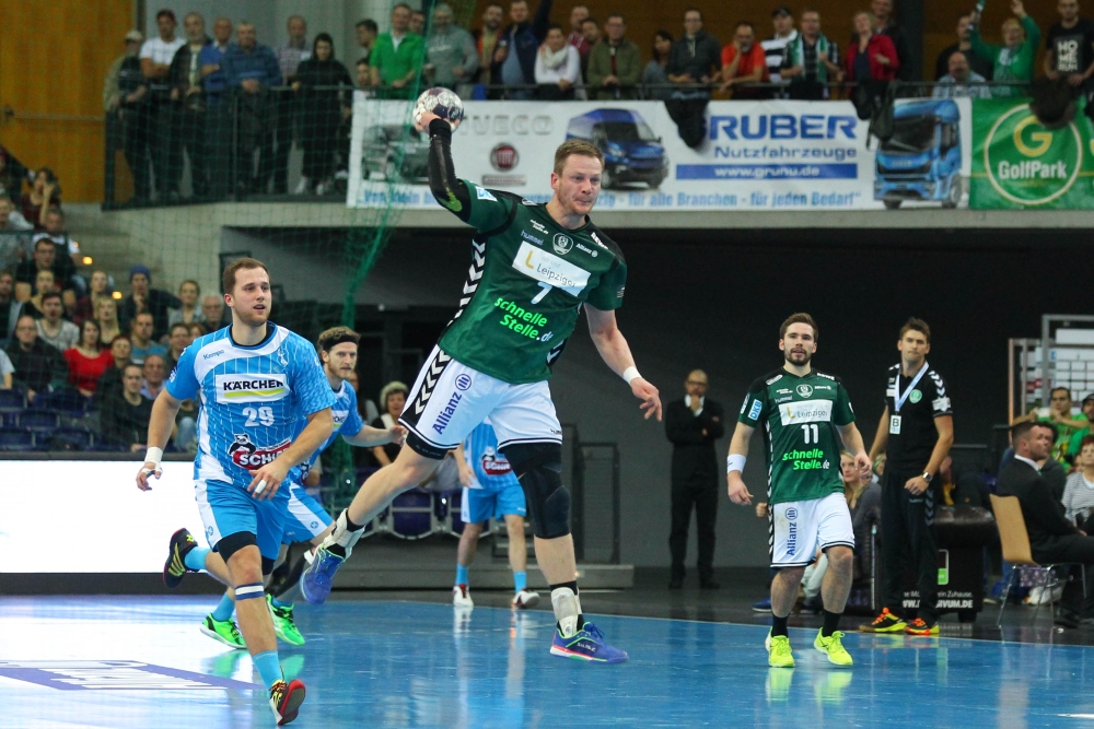 Mit der Saisonrekordkulisse von 4.084 Zuschauern im Rücken, drückte Leipzig der Partie vom Anpfiff weg seinen Stempel auf und lag durchgehend in Führung. Das anfängliche 4:1 (6.) konnten die Gäste, die mit Torhüter Johannes Bitter und Rückraum-Spieler Michael Kraus auch zwei Weltmeister von 2007 auf der Platte hatten, noch auch 5:4 (10.) einkürzen. Vier Leipziger Treffer in Folge stellten jedoch den Sicherheitsabstand wieder her (9:4/ 20.). Mit 12:8 ging es in die Halbzeitpause. Ganz zufrieden war DHfK-Coach Christian Prokop damit nicht, denn “gefühlt waren wir sechs Tore vorn”.