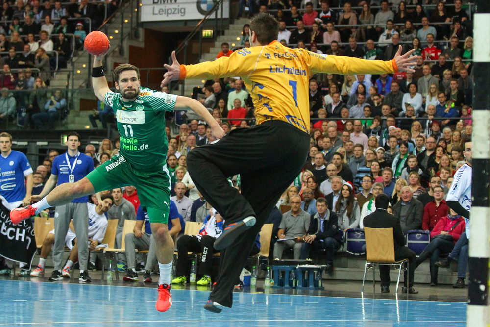 Die Leipziger, bei denen im Vorfeld auch noch Maximilian Janke mit einem Muskelfaserriss ausgefallen war, begannen in eigener Halle aber erfolgreich. Nach sechs Minuten führten sie mit 3:2. Dann allerdings schlichen sich Fehler ein, für die sich der Gast herzlich bedankte und plötzlich mit 4:7 (13.) vorn lag.