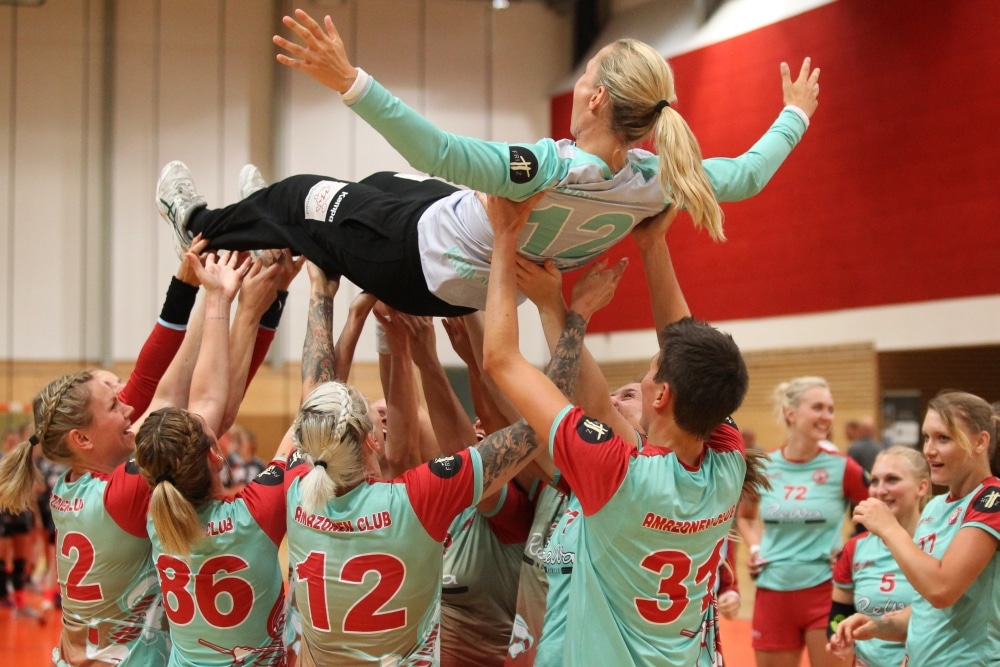 Zahlreiche ehemalige Wegbegleiterinnen waren am 10. August 2018 nach Leipzig gekommen, um in der Brüderhalle den offiziellen sportlichen Abschied von Katja "Schülki" Kramarczyk zu zelebrieren. Dabei stand die 140-fache Handball-Nationalspielerin eine Halbzeit lang für ihren letzten Verein Bayer Leverkusen im Tor und danach für den neu gegründeten Amazonen Athletic Club Leipzig (AAC).