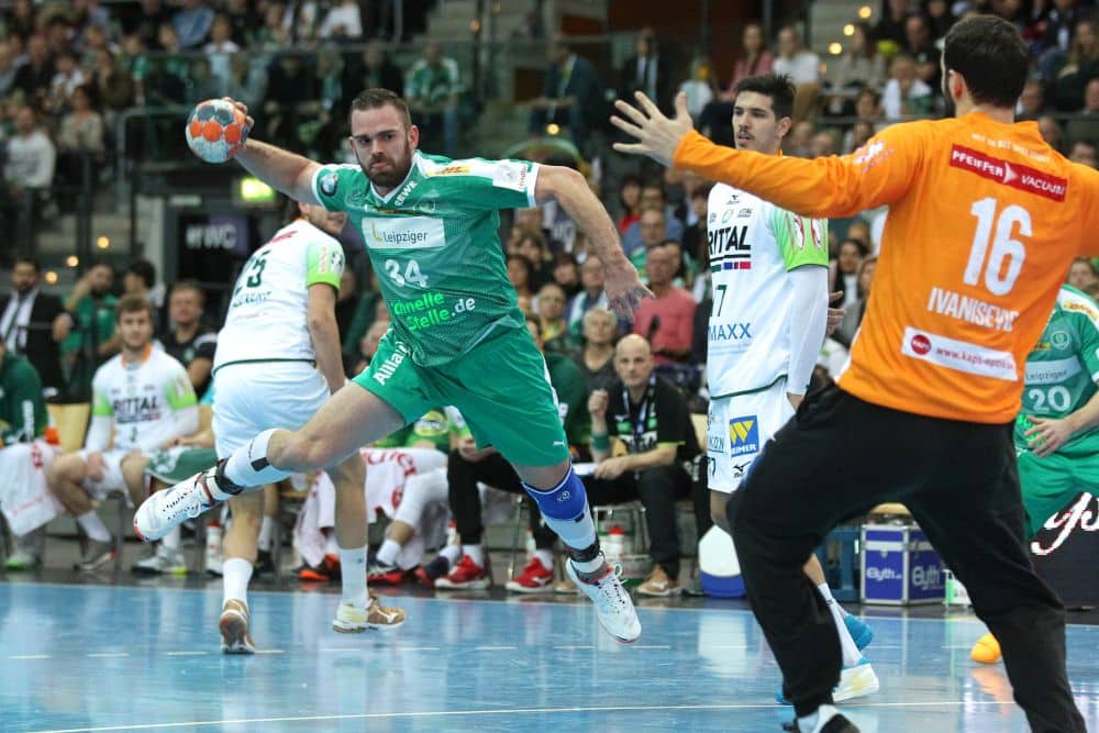 Zu Beginn nahm der Neuhesse auf der Bank Platz, erzielte den ersten seiner Treffer in der 24. Minute. 12:10 führte Leipzig zu diesem Zeitpunkt, die Hausherren konnten sich noch nicht entscheidend absetzen. Drei Tore betrug der maximale Vorsprung, gleich von Beginn zeigten die Gäste ihre Geduld im eigenen Angriff und erzielten mit dem letzten Pass bei Zeitspiel das 0:1. Leipzig hielt mit Ballgewinnen besonders beim Anspielen an den Kreis dagegen und setzte in der ersten Halbzeit das eigene Tempospiel durch.