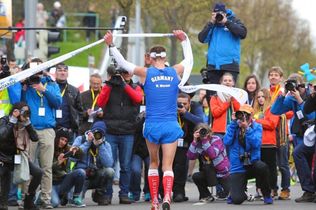 “Es war der erste Marathon, den ich ohne Verletzung abgeschlossen habe. Ich bin total happy, gewonnen zu haben.”, freute sich Marc Werner über seinen Erfolg. Dabei profitierte er vom Ausfall des mehrmaligen Leipzig-Marathon-Siegers Jakob Stiller (Leipzig), der krankheitsbedingt passen musste. Mit seiner Zeit von 2:39:29 h verwies Werner den Ironman-erfahrenen Per Bittner (Osterburg) auf den Silberplatz. Nur 27 Sekunden lagen zwischen den beiden Triathleten.