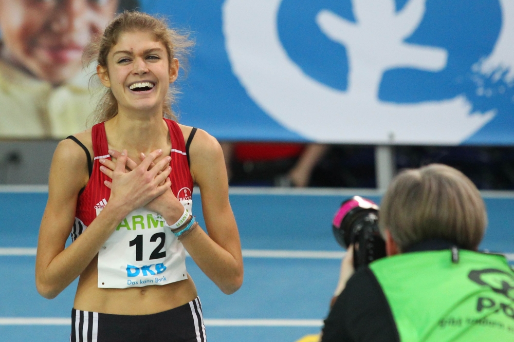 Mit deutschem U23-Hallenrekord und der zweitbesten Zeit, die in Deutschland je in der Halle über 1.500m gelaufen wurde, brillierte Konstanze Klosterhalfen (Leverkusen). Foto: Jan Kaefer