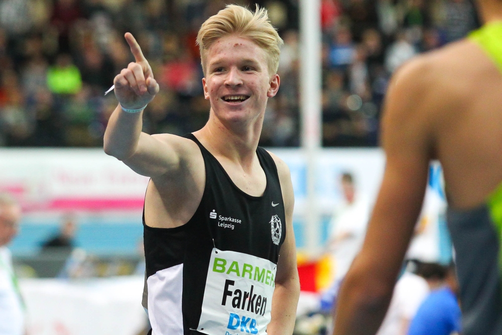 Robert Farken konnte Kräfte sparen, da über die 800 Meter der Männer das Starterfeld klein genug für ein Finale ohne Vorläufe wurde. Das 19-jährige SC DHfK-Talent lief ein routiniertes Rennen, setze sich nach der Kurvenvorgabe an die zweite Stelle, um nach 400 Metern dann die Führung zu übernehmen. Vor der letzten Kurve erwehrte er sich der Angriffe von Christoph Kessler (LG Karlsruhe) und behielt auch im Zielspurt die Nase vorn.