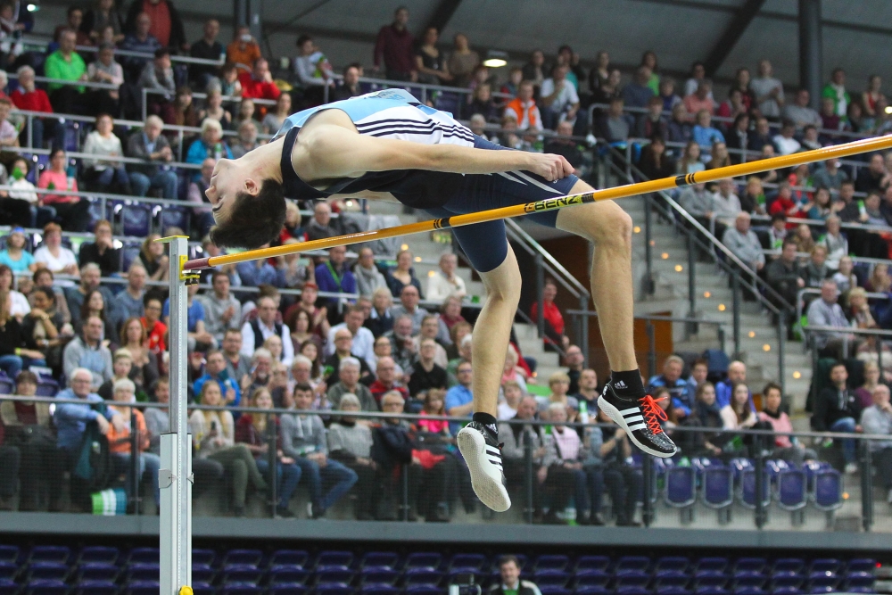 Im Hochsprung starteten von fünf Athleten immerhin zwei Sachsen – Bastian Rudolf (Dresdner SC) und Tim Schenker (LAC Erdgas Chemnitz). Für den Chemnitzer reichte es zu einer persönlichen Bestleistung in 2,17 Metern und dem Bronzerang. Bastian Rudolf schaffte 2,10 Meter und den fünften Platz. Der Sieg ging an Mateusz Przybylko (TSV Bayer 04 Leverkusen), der damit seinen dritten DM-Titel unter dem Hallendach einheimste.