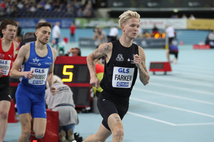 Die Halbfinals am Samstag bestätigten diese Favoritenrolle. Doch Farken wusste auch, dass er im Endlauf vor allem Marius Probst (TV Wattenscheid 01) im Blick behalten muss. Bis zur letzten Kurve gelang das dem 26-Jährigen auch gut. Doch plötzlich packte Probst den Sprinthammer aus und ließ seinen Leipziger Kontrahenten auf der Zielgeraden einfach stehen.