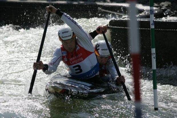 Wie viel Kraft das kostete, war am Sonntagnachmittag auf der schweren Strecke zu sehen. Oft mussten die Athleten zwischen zwei Toren kreuzen, nicht selten auch noch über eine Wasserwalze hinweg. Diese entstehen durch die Kunststoffhindernisse im Kanal, mit denen die Strömung beeinflusst wird. Jan Benzien hatte seinen Compagnon bei dessen Einzellauf kräftig angefeuert.