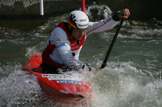 Lange konnte Franz Anton sich zunächst nicht über die gelungene Qualifikation und den Sieg im Zweierkanadier (C2) freuen. Zehn Sekunden waren es nach eigener Aussage. Denn nicht einmal eine Viertelstunde nach Zielankunft musste er im Einer wieder aufs Wasser des Markkleeberger Kanuparks und siegte mit einer lupenreinen Fahrt erneut. Umso größer war die Freude dann über gleich zwei erste Plätze. Diese machte die Hektik zwischen den beiden Rennen auch vergessen.