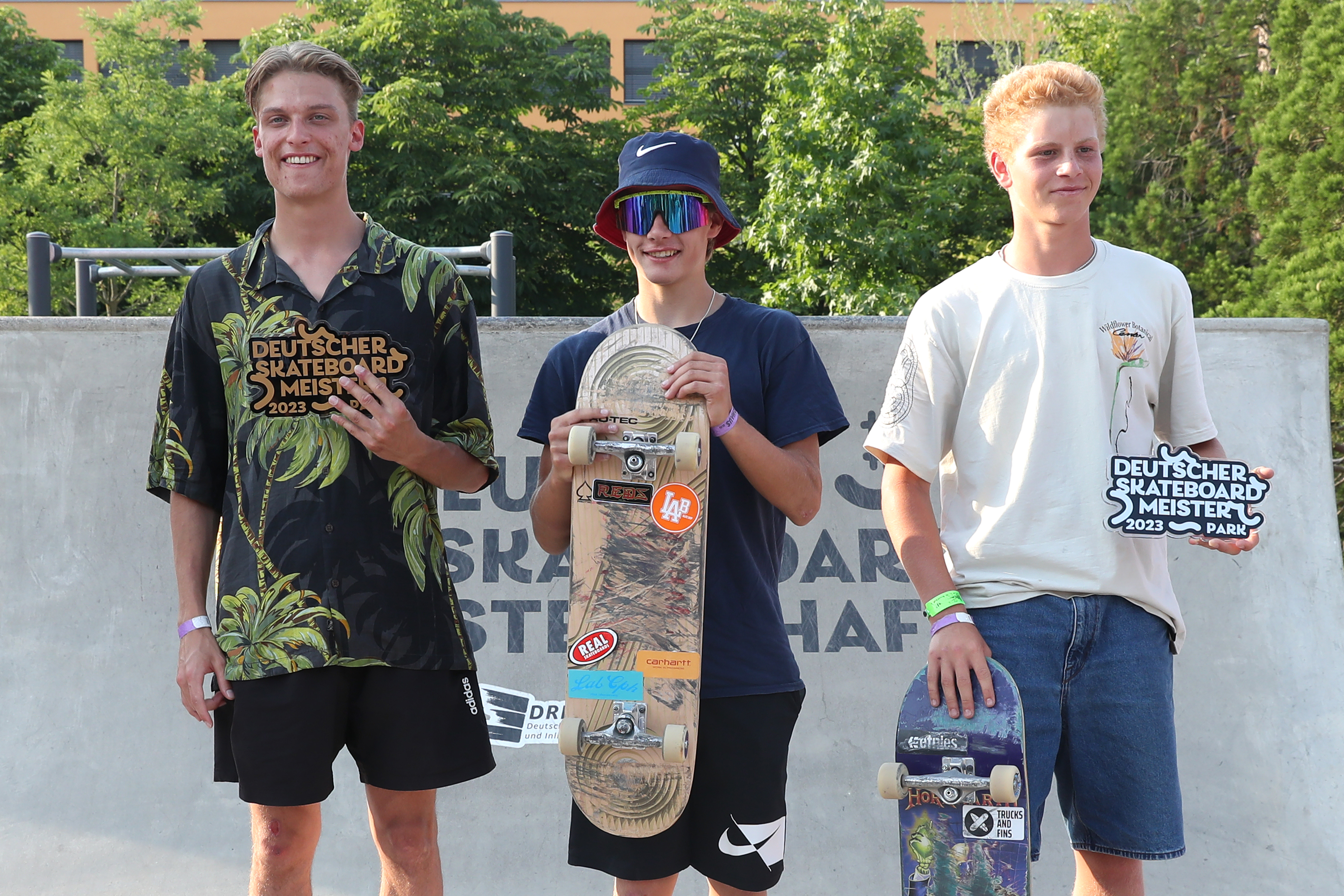 Im siebenköpfigen Teilnehmerfeld dieses Männer-Finales mischte mit Janosch Zgonina auch ein Leipziger Skater mit. Das Besondere: Er ist gerade einmal acht Jahre alt, doch nahm auf seiner heimischen Skate-Anlage die Herausforderung gegen die teils international erfahrene Konkurrenz couragiert an und erntete viel Applaus und Anerkennung.
