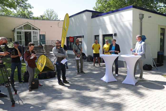 Insgesamt investierten die Sportbäder rund 1,175 Millionen Euro in die Saisonvorbereitungen: rund 210.000 Euro in die Saisonvorbereitung, 871.000 Euro in das Kassen- und Sanitärgebäude sowie Beckenumgang, Beckenfolie und Zuwegung am Kinderfreibecken Robbe sowie 93.000 Euro in die Dachsanierung des Gastronomiegebäudes am Ökobad.
