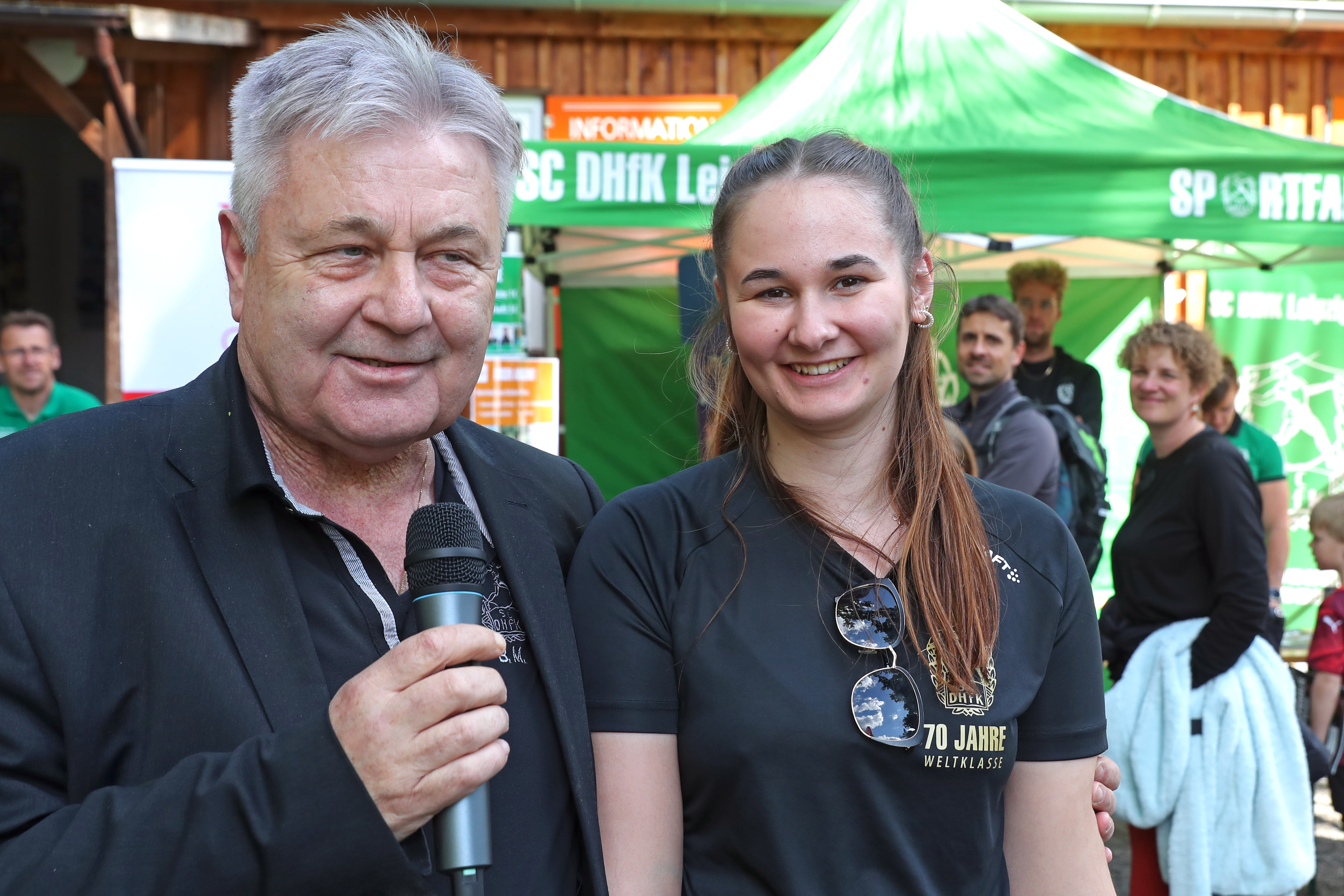 Die Spitzensportler Nic Ihlow (Marathon) und Marie Branser (Judo) halfen beim Verkauf. Foto: Jan Kaefer