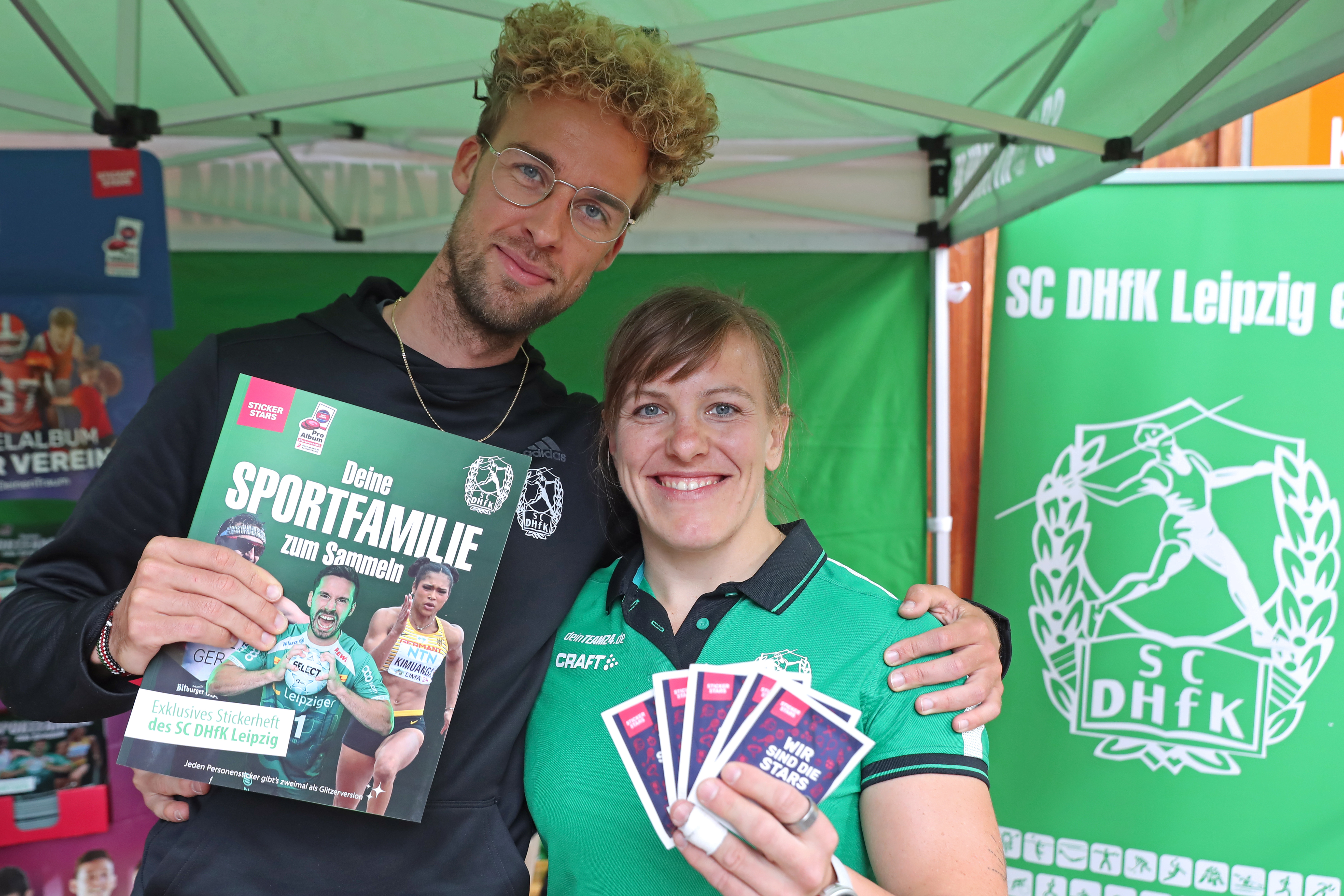 Derweil brachten am Verkaufsstand SC DHfK-Spitzensportler wie Judoka Marie Branser, Marathonläufer Nic Ihlow oder auch die Bundesliga-Handballer Lukas Binder und Nils Greilich die Hefte und Sticker unter die Leute. Das Sammelheft enthält schon eine Start-Wundertüte mit 6 Stickern und kostet 5 Euro. Die Aufkleber selbst sind in 5er-Tütchen für 1 Euro erhältlich.