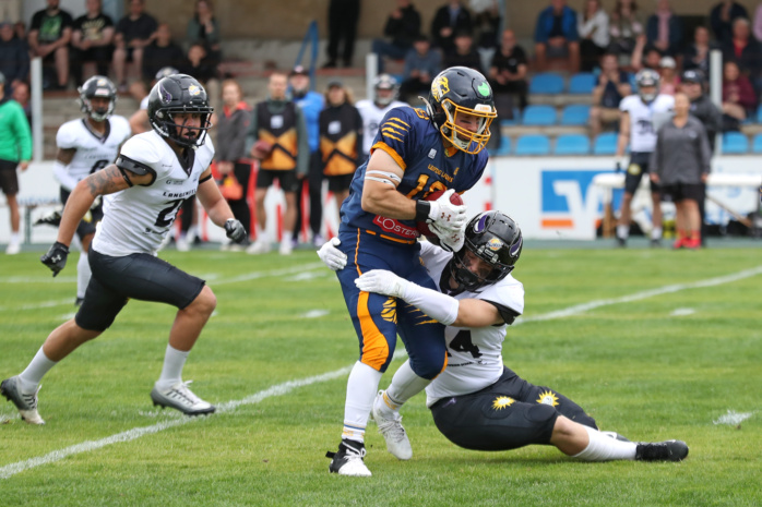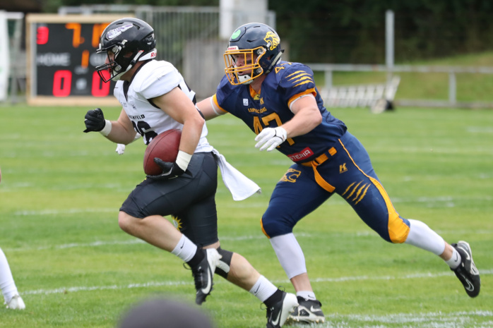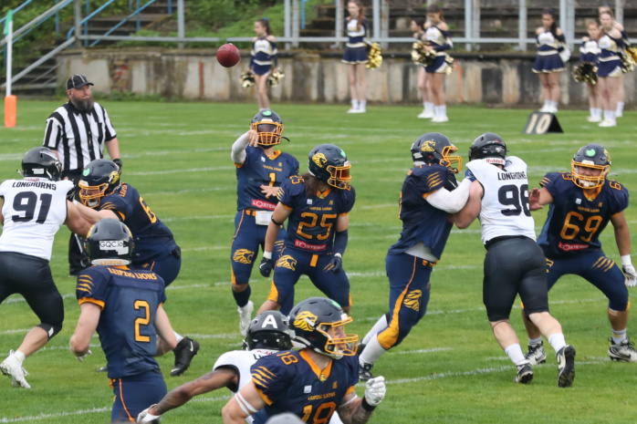 Der Plan ging auf – und die Lions feierten es lautstark, auch wenn sie sich letztlich mit 21:35 geschlagen geben mussten. „Wenn wir hier zum Schluss eine Two-Point Conversion schaffen und die Mannschaft das feiert, als ob es der Sieg wäre, zeigt das, wie gut sie emotional gefestigt ist“, zollte Headcoach Carsten Kunz seinen Lions Respekt.