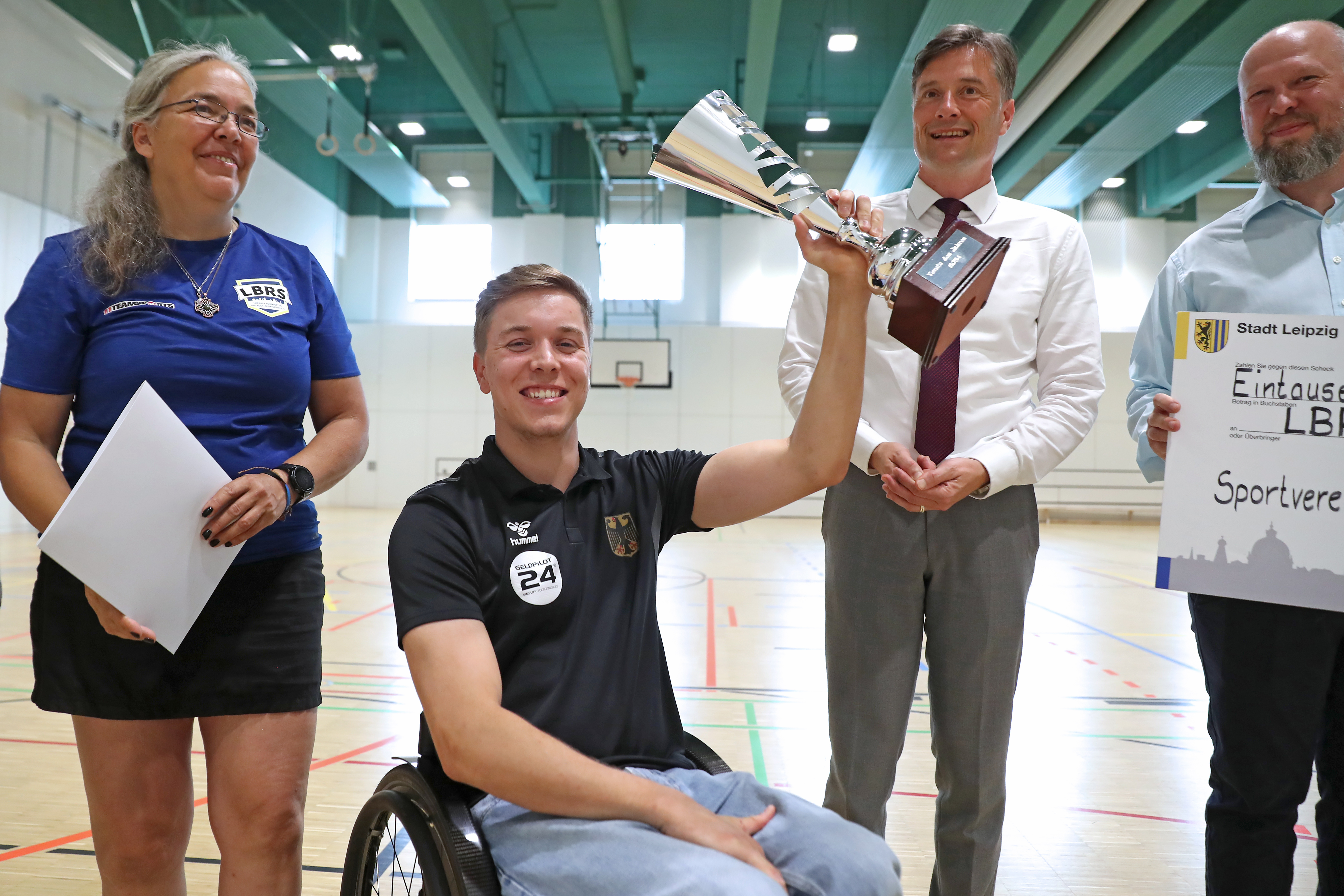 Zu diesen Spielen hatte der LBRS im vergangenen Jahr zwei Athleten entsenden können. Paratriathlet Max Gelhaar kehrte gar mit einer Silbermedaille heim, Josco Wilke kam mit dem Rollstuhlrugby-Nationalteam auf Platz 8 ein. Letzterer gehörte auch zu der kleinen Delegation seines Vereins, die am 7. Juli die Leipziger Auszeichnung entgegennehmen durfte.