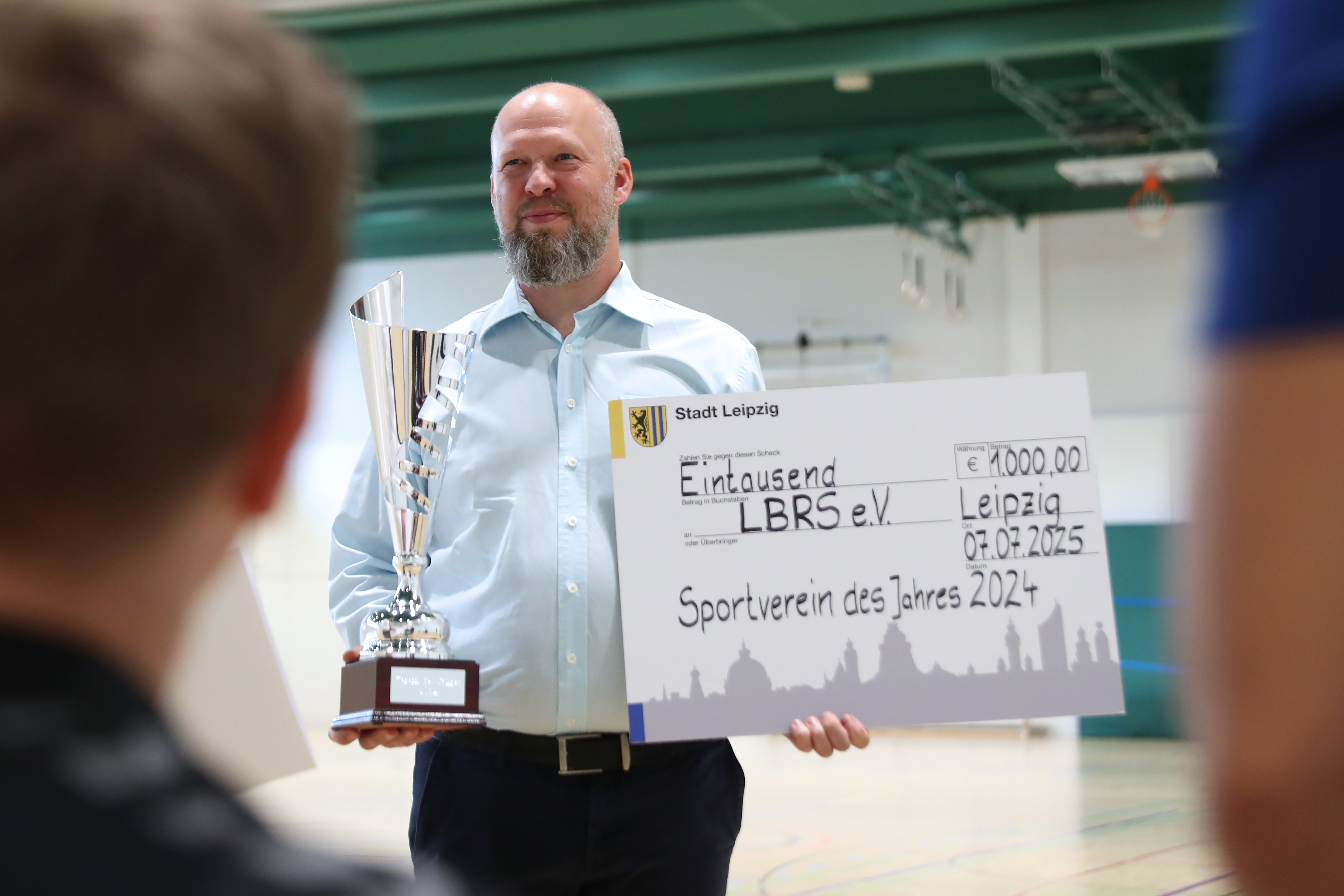 Damit hatten die Behinderten- und Reha-Sportler nicht gerechnet: Die Stadt Leipzig hat ihren LBRS zum „Sportverein des Jahres 2024“ gekürt. Aus den Händen von Sportbürgermeister Heiko Rosenthal (Die Linke) und dem stellvertretenden Sportamtsleiter Boris Wilde nahmen sie am Montag den Siegerpokal sowie einen Scheck über 1.000 Euro entgegen.