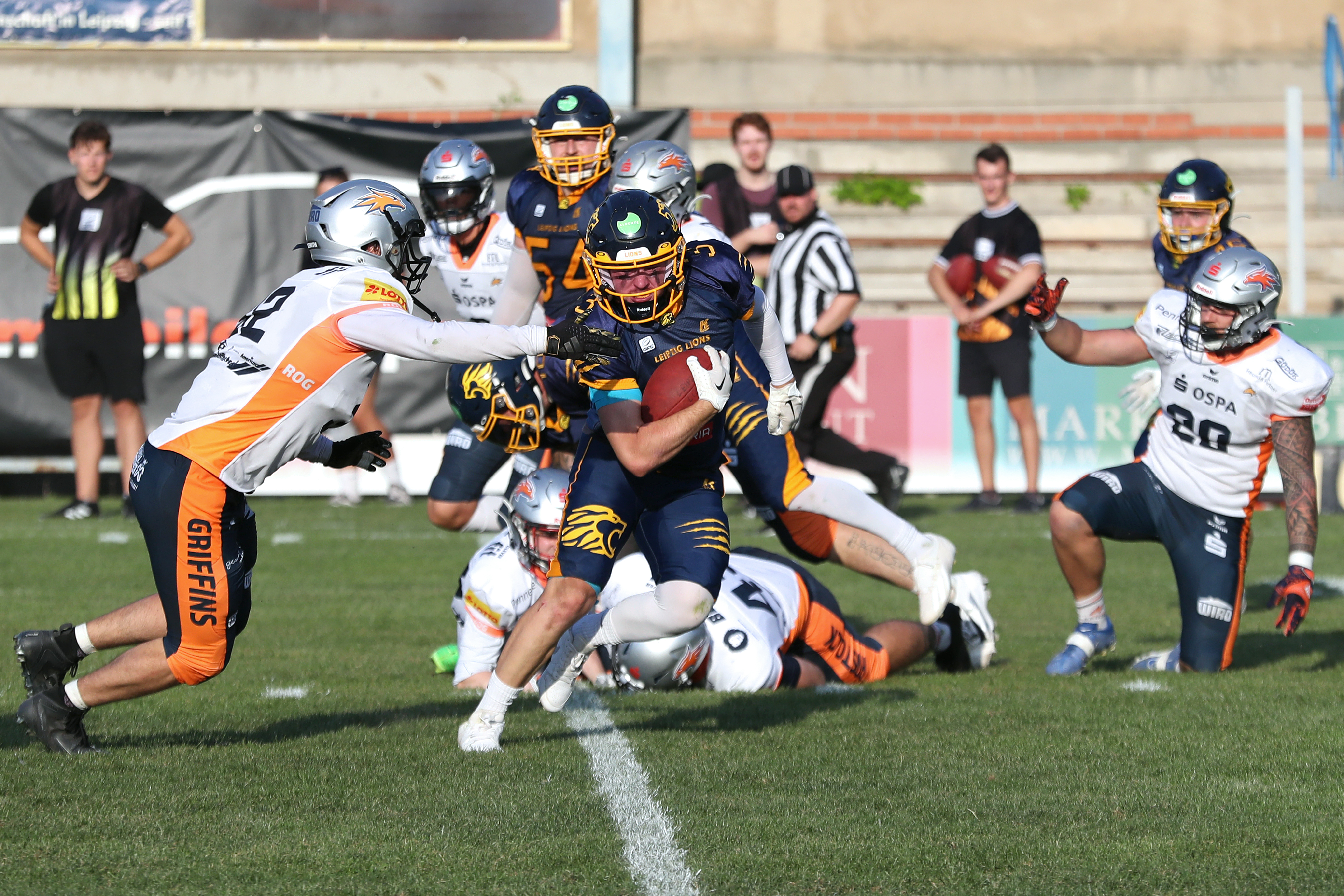 Es war die bisher spannendste Vorstellung, die die Leipzig Lions in ihrer ersten GFL2-Saison abgeliefert haben. Und das ausgerechnet gegen den Tabellenführer Rostock Griffins. Mit der wirklich letzten Aktion – bei bereits abgelaufener Zeit – hätten die Leipziger am Samstag im Markkleeberger Camillo Ugi Sportpark noch für die Sensation sorgen können.