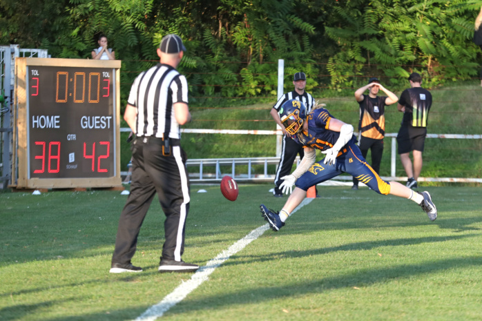 „Wir hatten es eigentlich verdient, mit einem Sieg hier rauszukommen“, schwang bei Lions-Headcoach Carsten Kunz zunächst etwas Enttäuschung mit. Letztlich überwog aber der Stolz auf die von seinem Team gezeigte Leistung. „Sie haben immer an sich geglaubt, auch wenn es mal hart war. Wir haben die Sachen super ausgeführt, und auch die Änderungen haben super gefruchtet. Leider hat es aber nicht gereicht. Das Spiel war von der Zeit her ein bisschen zu kurz, um nochmal zurückschlagen zu können.“