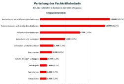 Das Argument, Deutschland brauche Zuwanderung, um seinen Fachkräftebedarf zu decken, ist bislang das einzige, das von Seiten der Wirtschaft unterstützt wird, wenn es um die Aufnahme von Flüchtlingen geht. Die Zahlen dazu selbst stammen aus dem Institut für Arbeitsmarkt- und Berufsforschung (IAB), das der Bundesagentur für Arbeit angegliedert ist. 400.000 Menschen müssten jedes Jahr zuwandern, um das Arbeitskräftepotenzial in Deutschland zu sichern.