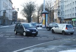 Da sind die Vorschriften augenscheinlich streng: Solange nicht mehr Leute mit Fahrrad durch eine Straße fahren als Leute mit Auto, kann dem Radverkehr kein Vorrang eingeräumt werden und wird die Straße nicht zur Fahrradstraße. Die Katze beißt sich zwar verbal in den Schwanz. Aber für die KarLi sieht das Dezernat Stadtentwicklung und Bau so eben noch keine Chance, auch nur abschnittsweise zur Fahrradstraße zu werden.