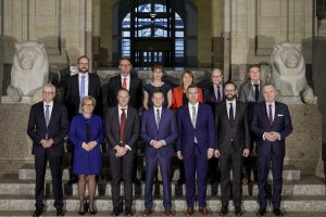 Ministerpräsident Michael Kretschmer und sein Kabinett. Foto: Nikolai Schmidt