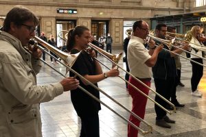 In der Osthalle des Leipziger Hauptbahnhofs überraschten am Samstag, 18. September, Orchester und Chor der Philharmonie Leipzig die Reisenden, Passantinnen und Passanten mit einem musikalischen Flashmob. Die Botschaft der Aufführung war freilich nicht nur Beethovens „Freude“, sondern das Thema, das uns alle mittlerweile umtreiben sollte: eine Zukunft, in der wir die Welt nicht zerstören.