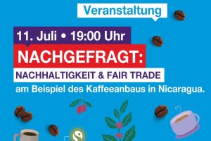 Im Rahmen unserer Veranstaltungsreihe „Nachgefragt!“ widmen wir uns am 11.07.2022 am Beispiel des Kaffeeanbaus in Nicaragua den Themen Nachhaltigkeit und Fairer Handel. An dem Abend wird – dank der Unterstützung von CAFE CHAVALO – Jolver Mendoza aus Nicaragua zu Gast sein, der gemeinsam mit seiner Mutter Bio-Kaffee in seinem Land anbaut. Er möchte an dem […]