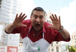 „SACHSEN gegen den Rest der Welt!!“, macht Achim Borgschulze in echter Marktschreiermanier neugierig auf die nächste Woche. Er darf das. Er organisiert die Touren der Gilde der Marktschreier durch Deutschland. Einmal im Jahr gastieren sie auch in Leipzig, auf der Straße des 18. Oktober am Völkerschlachtdenkmal. Mit „5 Tage Halli- Galli am Völki!!“, wie Achim Borgschulze betont.