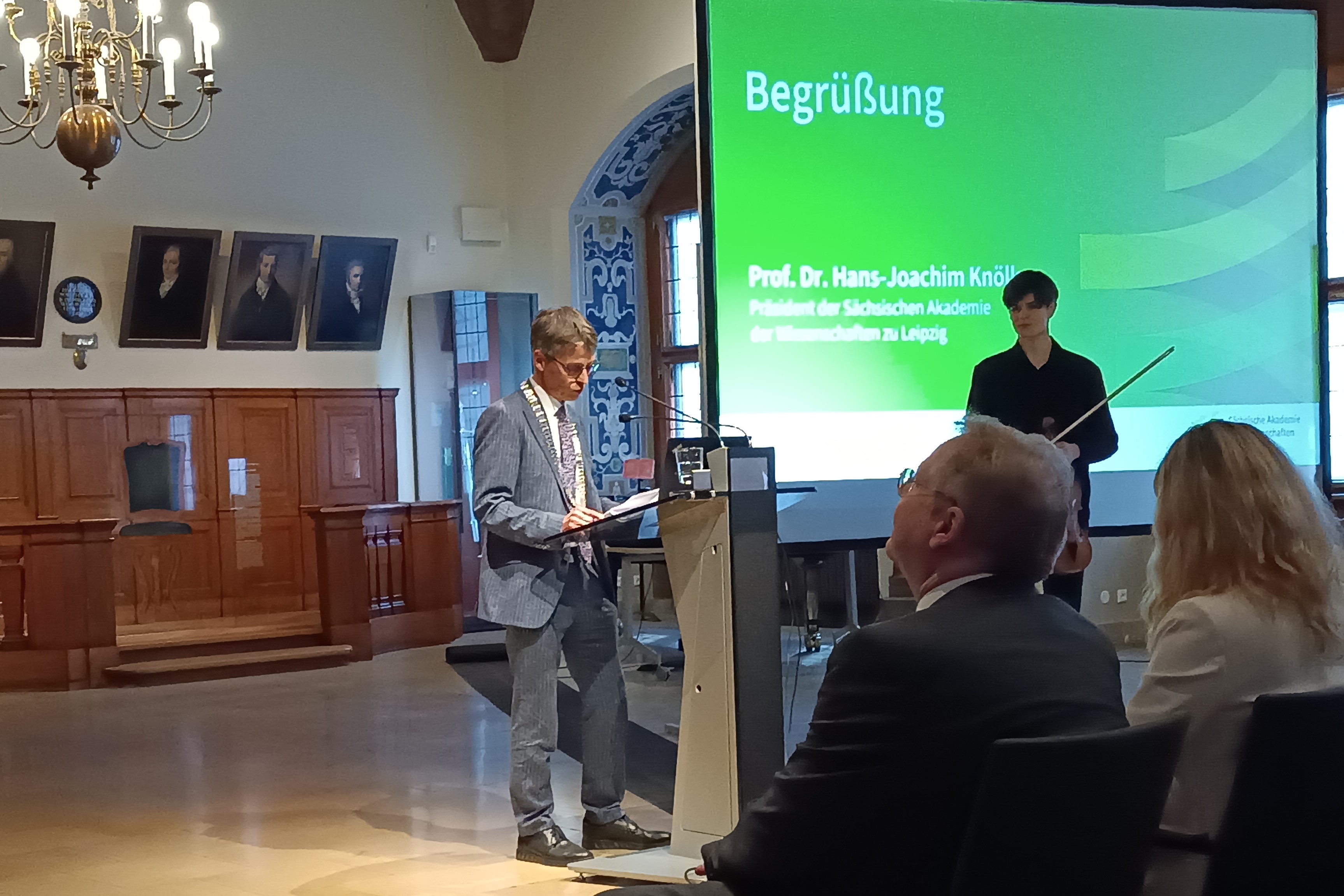 Der Präsident hatte in seiner Ansprache darauf hingewiesen, dass die „Sächsische Akademie“ eigentlich eine drei Bundesländer übergreifende Einrichtung ist. Somit war aus dem Ministerium für Wissenschaft, Kultur und Tourismus des Freistaates Sachsen Staatssekretärin Prof. Dr. Heike Graßmann, aus Sachsen-Anhalt der Minister für Wissenschaft, Energie, Klimaschutz und Umwelt Prof. Dr. Armin Willingmann und aus dem Ministerium für Bildung, Wissenschaft und Kultur des Freistaates Thüringen Staatssekretär Prof. Dr. Steffen Teichert anwesend.