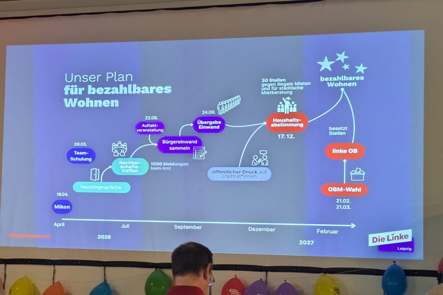 Am Ende gab es einen „Plan für bezahlbares Wohnen“, dieser liegt uns als Foto vor. Dieser beinhaltet auf der einen Seite die Vernetzung von Mieterinnen und Mietern, die gemeinsame Erarbeitung von Bürgereinwänden, die schließlich in den Stellenplan zum nächsten Doppelhaushalt, in Form von „30 Stellen gegen illegale Mieten und für städtische Mietberatung“ eingehen sollen.