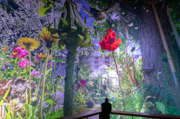 Seit 26. Januar 2019 wird im Panometer Leipzig Yadegar Asisis 360°-Panorama „CAROLAS GARTEN – Eine Rückkehr ins Paradies“ präsentiert. Als stünde man auf dem Stempel inmitten des Blütenkelchs einer Kamille erschließt sich eine faszinierend-fremdartige Szenerie. Eine gigantische Biene ist gerade dabei, die Kamillenblüte zu bestäuben und Nektar zu sammeln. Der Blick öffnet sich auf die Welt des umgebenden Gartens und der Blumen, Pflanzen und anderen Bewohner. Das Rundbild thematisiert aktuelle Fragen der Umwelt und demonstriert insbesondere auch die Schönheit der Natur direkt zu unseren Füßen.