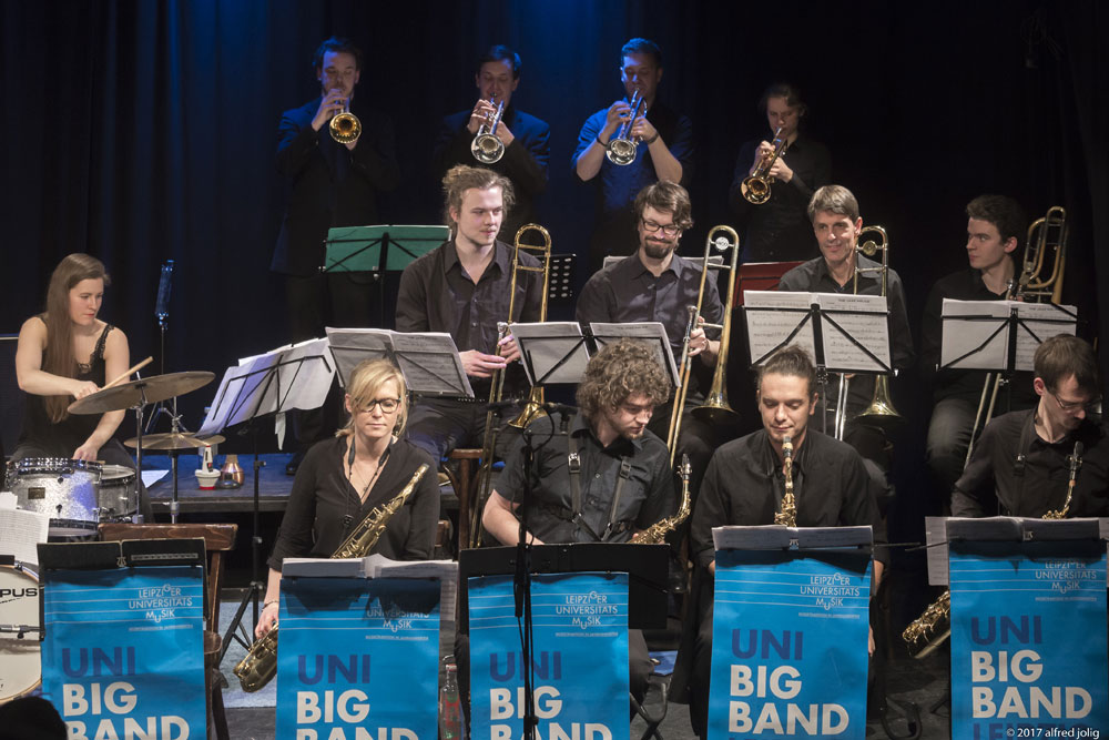 Am Samstag den 20. Januar wird die naTo-Bühne voll: Die Leipziger Unibigband spielt Stücke aus ihrem aktuellen Repertoire. Seit mehr als einem Jahrzehnt bereichert das Jazz-Ensemble die universitäre, aber auch die freie Jazzszene Leipzigs. Studierende verschiedenster Fachrichtungen lassen unter der Leitung des Saxofonisten Reiko Brockelt nicht nur Hörsäle im Rhytmus des Swing, Latin- und Modern Jazz erklingen.