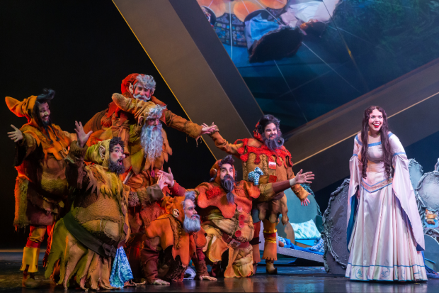 Kostüm- und Bühnenbildner Alexander J. Mudlagk erschafft für das Ensemble eine fantasievolle Märchenwelt auf der Drehbühne des Opernhauses, wo ein gothisches Schloss ebenso Platz findet, wie ein geheimnisvoller Wald mit seinen tierischen Bewohnern oder das zauberhafte Zuhause der sieben Zwerge. Der Ausstatter vervollständigt mit seiner Arbeit an »Schneewittchen« nach »Hänsel und Gretel« und »Alice im Wunderland« (Musikalische Komödie) seine märchenhafte Trilogie an der Oper Leipzig.
