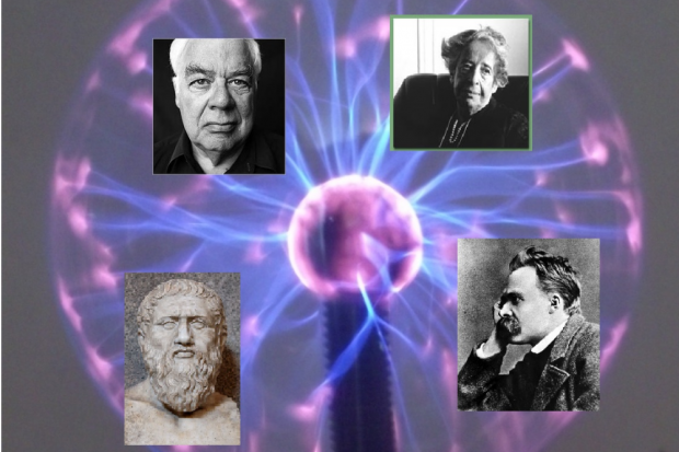 Ein einmaliges Zusammentreffen von Aristoteles, Friedrich Nietzsche, Hannah Arendt und Richard Rorty. Die toten Philosoph*innen werden gespielt von Prof. Dr. Thomas Kater/Universität Leipzig, Dr. Daniela Ringkamp/Universität Magdeburg), Dr. Heidi Salaverría/Hamburg und Prof. Dr. Arno Böhler/Universität Wien. Moderation: Rainer Totzke (Leipzig)