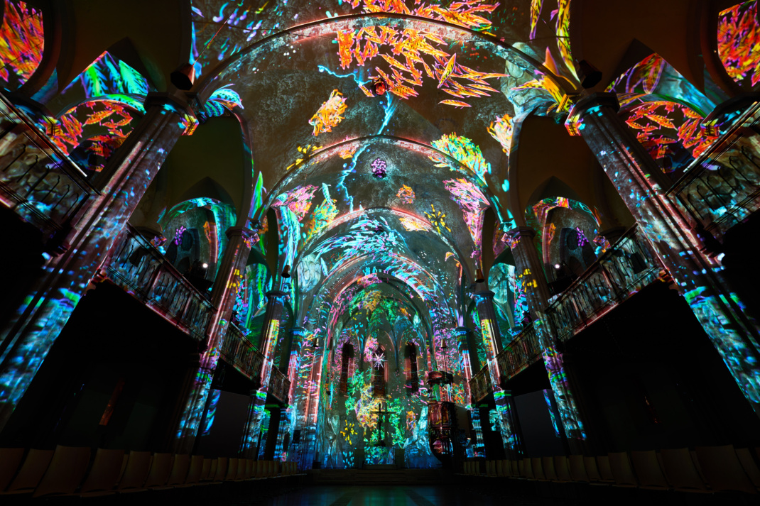 Gestochen scharfe, kaleidoskopartige Bilder fließen über die Wände der Kirche, sodass die Besucher sprichwörtlich in die Kunst eintauchen können. „Unser Fokus war darauf gerichtet, die Ursprungsgeschichte ohne konfessionellen Rahmen zu präsentieren, damit sie für jeden offen und frei interpretierbar bleibt“, erklärt Projektleiterin Alisa Ostermann.
