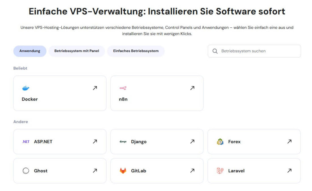 | 1-Klick Installer | cPanel, Plesk, Docker, WordPress etc. |