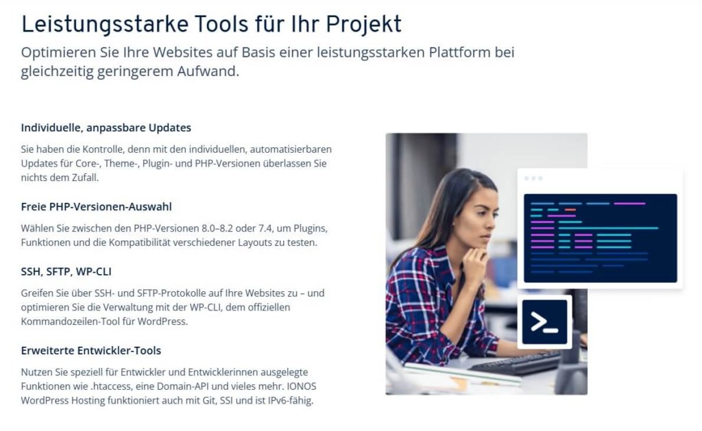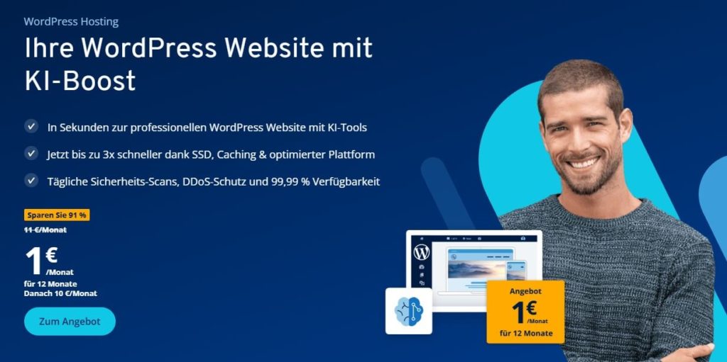 Mit seinem speziellen WordPress-Paket richtet sich IONOS an Blog-Betreiber, Selbstständige und kleine bis mittlere Unternehmen, die schnell und ohne großen technischen Aufwand starten möchten.