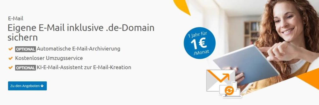 - E-Mail-Versand und -Empfang über eigene Domain (z. B. kontakt@ihredomain.de)