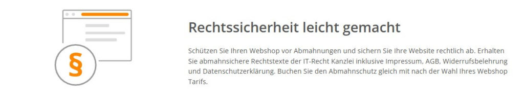 Strato erfüllt alle rechtlichen Vorgaben für den deutschen Markt. Dazu zählen SSL-Verschlüsselung, Hosting in Deutschland, automatische Cookie-Banner, DSGVO-konforme Bestellprozesse sowie rechtskonforme Textbausteine für AGB, Impressum, Datenschutz und Widerrufsbelehrung.