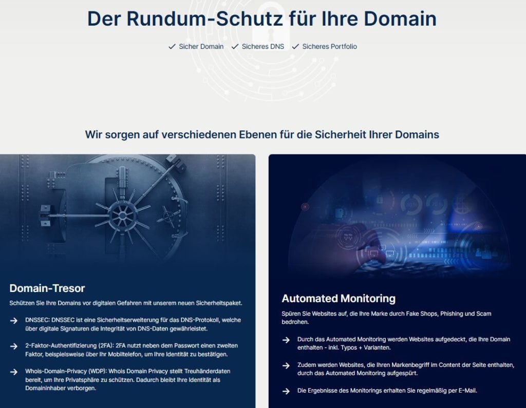 - Registrierung von über 1.000 TLDs (inkl. .de, .com, .shop, .tech etc.)