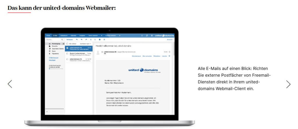 Der Webmailer von United Domains ist ein browserbasierter Zugang zu allen E-Mail-Konten, die über die Plattform eingerichtet wurden. Er ermöglicht das Lesen, Versenden und Verwalten von E-Mails ohne zusätzliche Software. Der Dienst ist unter https://webmail.united-domains.de erreichbar und funktioniert auf allen gängigen Endgeräten.