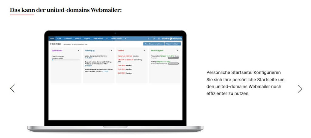 Die browserbasierte Oberfläche eignet sich besonders für Nutzer, die von unterwegs oder vom Arbeitsplatz aus auf ihre geschäftliche oder private E-Mail-Domain zugreifen möchten.