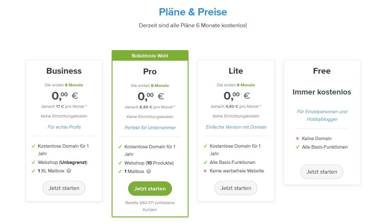 | Inklusive Domain (Pro/Business) | 0 € | eine Domain pro Website inklusive |