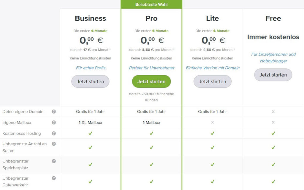 Wichtig: Die Preisstruktur von Webador ist transparent, ohne versteckte Zusatzkosten oder Einrichtungsgebühren. Alle Pakete enthalten Hosting, SSL-Verschlüsselung und Zugang zum Baukasten-Editor.