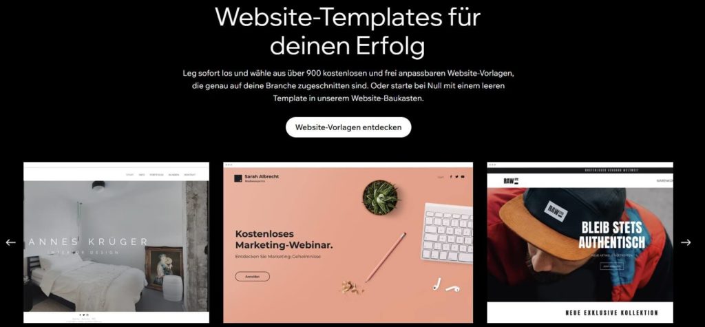 Ein herausragendes Merkmal von Wix ist die riesige Auswahl an professionell gestalteten Designvorlagen. Derzeit stehen ĂŒber 800 kostenlose Templates zur VerfĂŒgung, die speziell auf Branchen wie Gastronomie, Coaching, Online-Shops oder Portfolio-Seiten zugeschnitten sind.