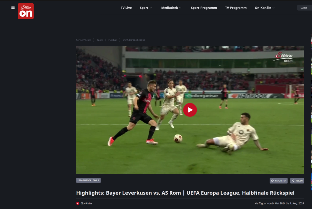 Auf Servustv.com kann man die Europa League (mit VPN!) mit deutschem Kommentar kostenlos empfangen