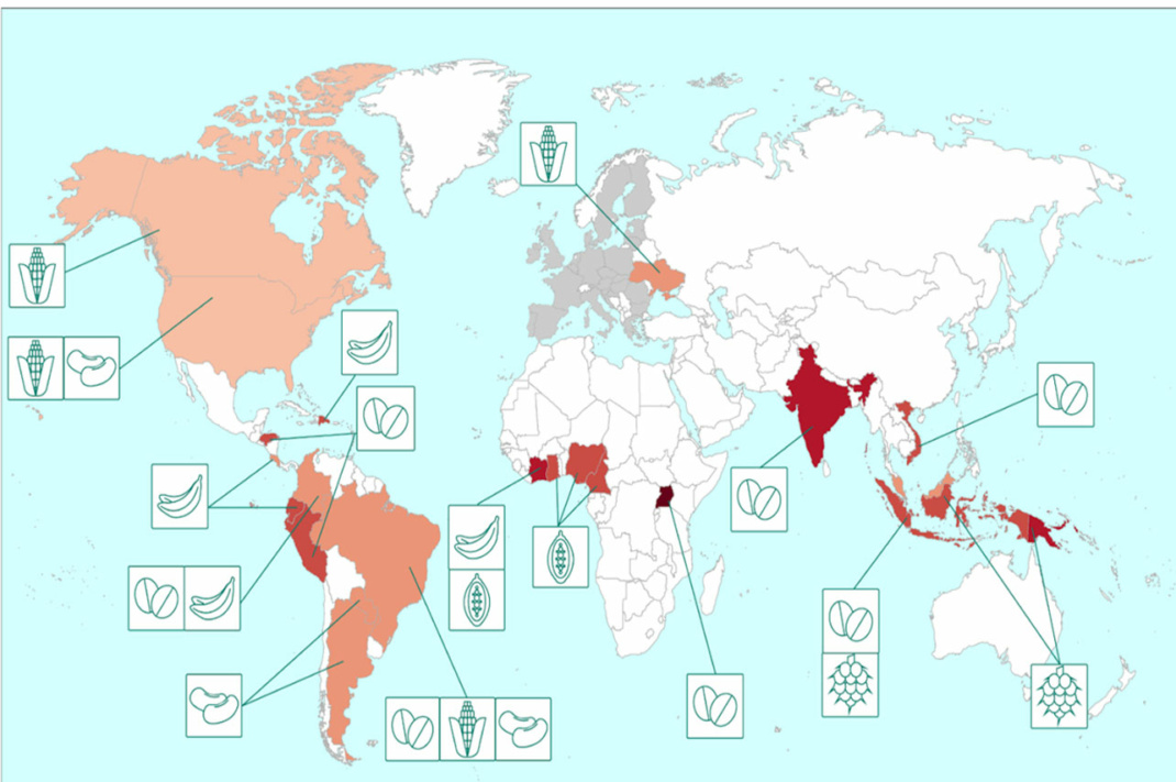 Im Gegensatz dazu kann Weizen jedoch tatsächlich einen Anstieg der Ernteerträge um etwa 17 % verzeichnen. Die Änderungen dieser Erträge sind auf den prognostizierten Temperaturanstieg, Verschiebungen in der Niederschlagsverteilung und erhöhte Kohlendioxidkonzentrationen durch Treibhausgasemissionen zurückzuführen. Dies erschwert den Maisanbau in den Tropen, erweitert jedoch auch das Anbaugebiet insgesamt betrachtet.
